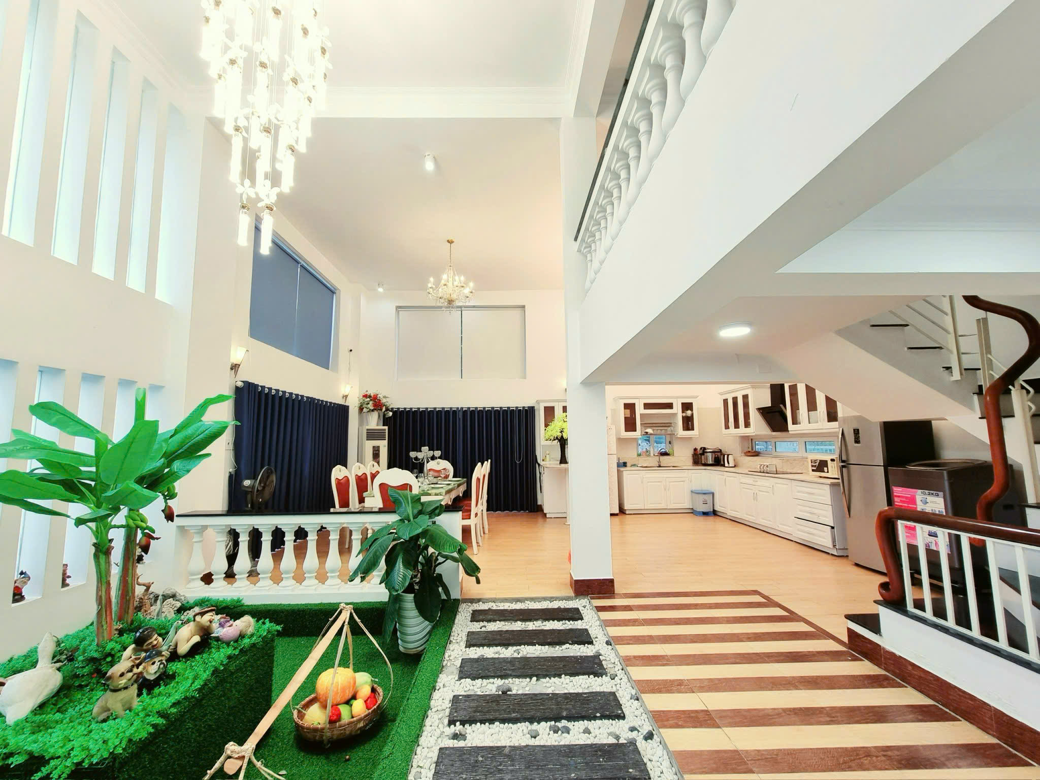 Amenities: Separate living room, spacious double-height kitchen. 8 TVs with Wi-Fi connection, outdoor BBQ grill, and washing machine.